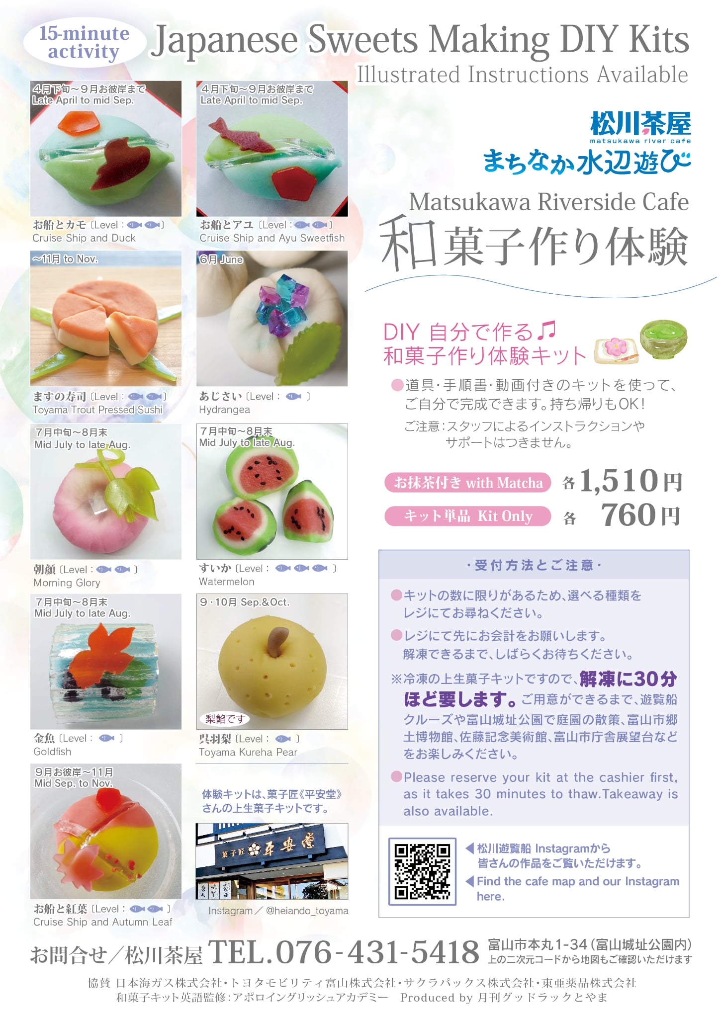 体験料:おひとりさま2,200円(お抹茶+1キット,会場貸切料込み)