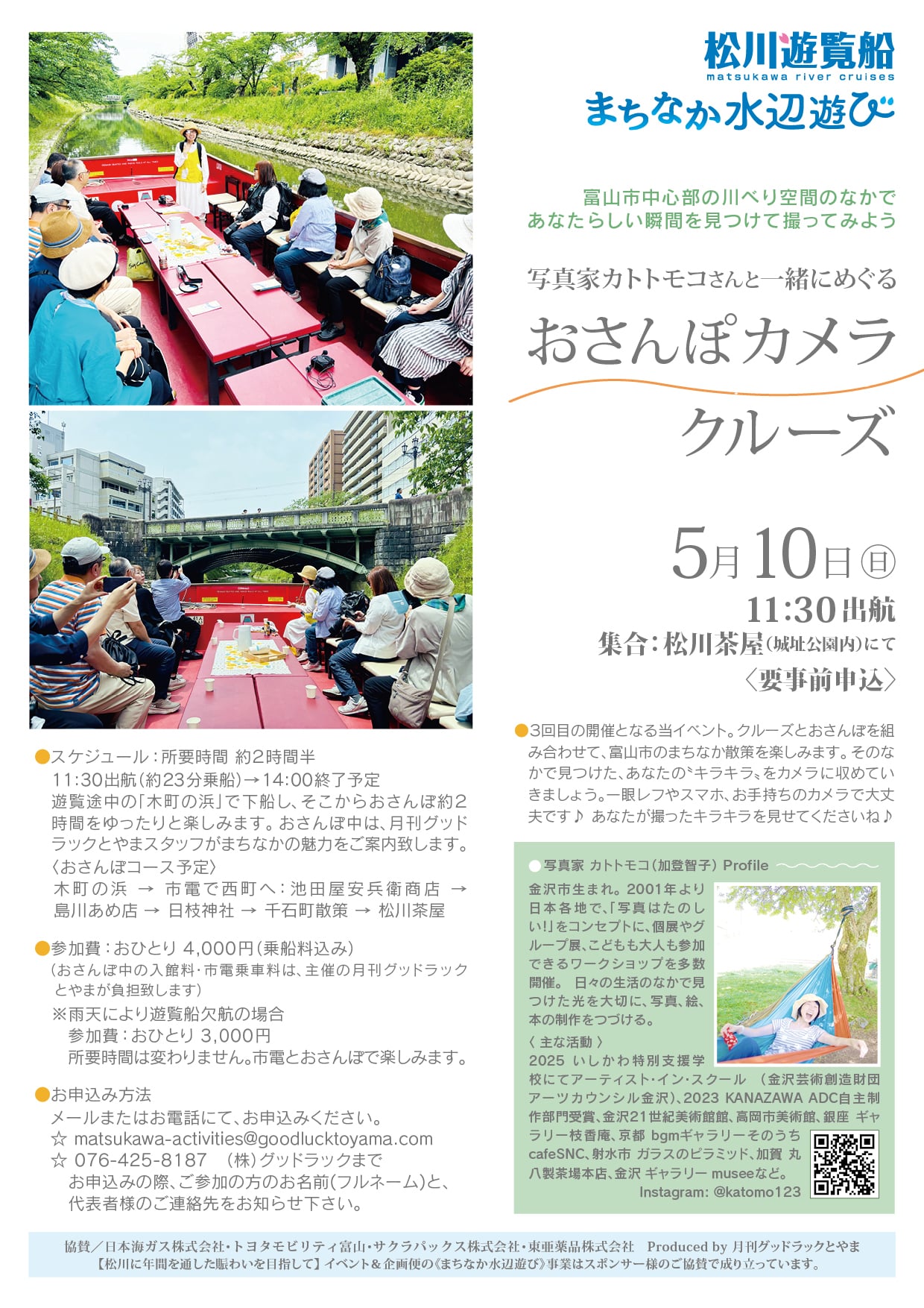 • 『写真家カトトモコさんと一緒にめぐる「おさんぽカメラクルーズ」』:26/5/10(日) 11:30出航